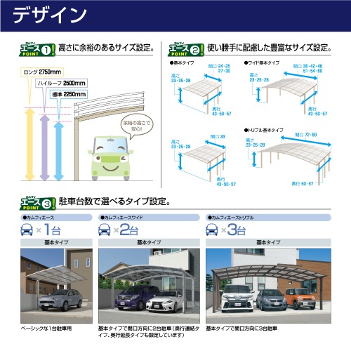 基本タイプ:1台用から、間口方向に3台まで駐車可能なタイプまで対応。