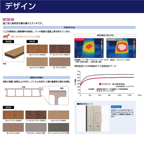 床材の表面に遮熱性のある顔料を使用し、デッキ表面の温度上昇を抑制。
