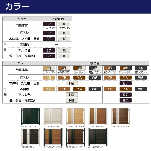 門柱・錠、部品カラー:プラチナステン(門扉複合色時推奨)/カームブラック(門扉単色時推奨)